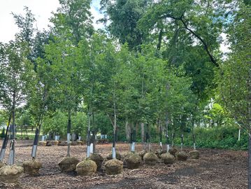 • Common Uses: Ideal for large landscapes, parks, and streetscapes. Known for its broad canopy and strong branching, it provides excellent shade and vibrant fall color, making it a popular choice for shade trees and ornamental planting.