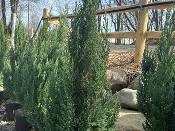 The Blue Point Juniper grows 8-12 feet tall with a spread of 4-6 feet. It thrives in full sun and well-drained soil. Water requirements are moderate, needing regular watering until established, then less frequent once mature. This juniper is highly deer-resistant, making it a great choice for areas with deer activity. It has a moderate growth rate, adding 6-12 inches per year. Drought-tolerant once established, it’s ideal for landscaping, privacy screens, or as a specimen tree.