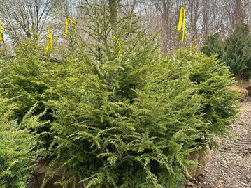 The Sea Green Juniper grows 8-10 feet tall with a spread of 4-6 feet. It thrives in full sun and well-drained soil. Water requirements are moderate, needing regular watering until established, then less frequent once mature. Known for its deer resistance, it is less likely to be eaten by deer. This juniper has a moderate growth rate, adding 6-12 inches per year. It is drought-tolerant once established and works well in landscapes, screens, or as a shrub.